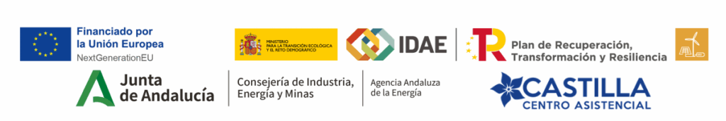 CENTRO ASISTENCIAS CASTILA PARA LA TERCERA EDAD SLU ha recibido una ayuda de la Unión Europea con cargo al Fondo NextGenerationEU, en el marco del Plan de Recuperación, Trasformación y Resiliencia, para los proyectos de autoconsumo de 30kWh dentro del programa de incentivos ligados al autoconsumo y almacenamiento, con fuentes de energía renovable, así como la implantación de sistemas térmicos renovables en el sector residencial del Ministerio para la Transición Ecológica y el Reto Demográfico, gestionado por la Junta de Andalucía, a través de la Agencia Andaluza de la Energía